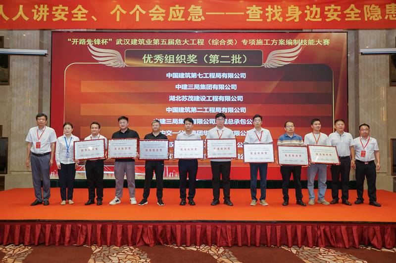 2025年6月25日,“开路先锋杯”武汉建筑业第五届危大工程(综合类)专项施工方案编制技能大赛圆满落幕。在此次大赛中,我司6项目获奖,其中技术创新奖1项,优秀成果奖5项,我司荣获优秀组织奖。