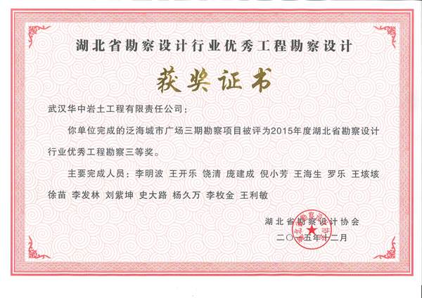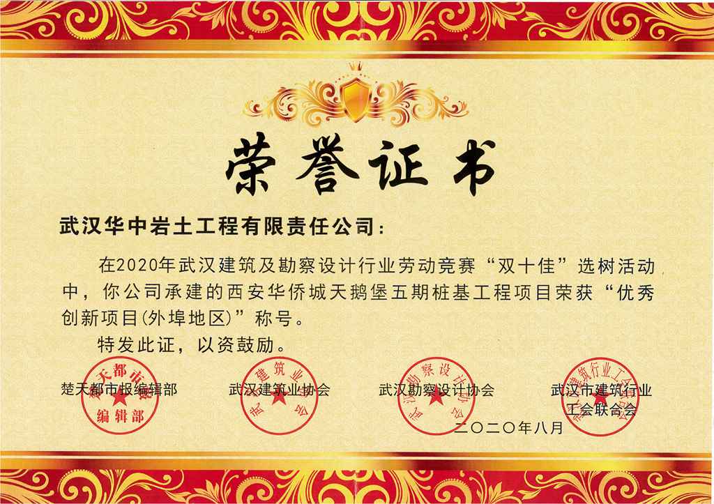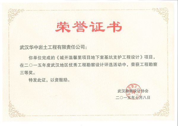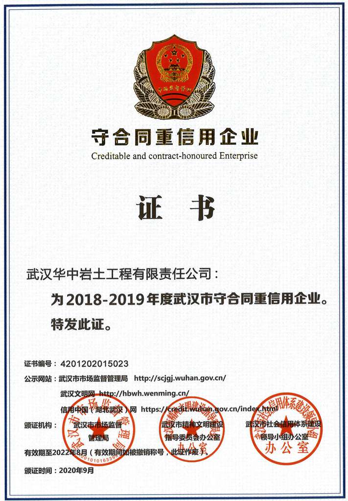华中岩土>关于华岩>企业荣誉